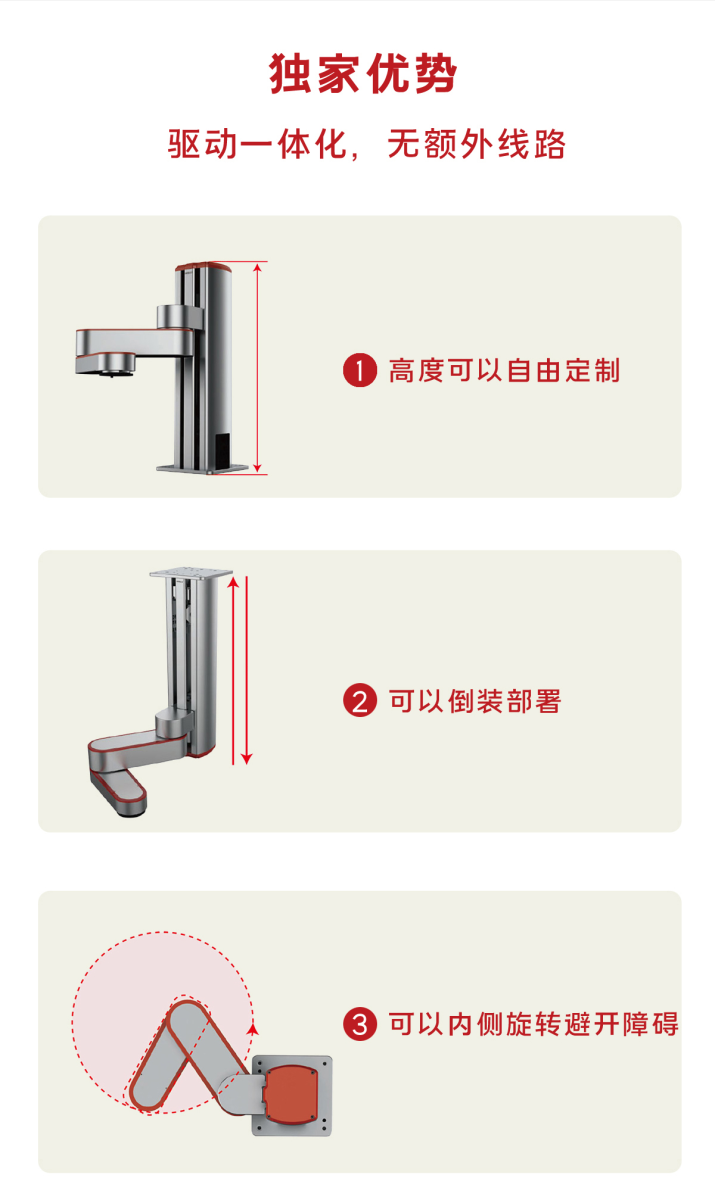 | 電器預(yù)留接口 | 標(biāo)配:插座面板直通小臂下蓋板2根4*23awg(無(wú)屏蔽層)線(xiàn) 可選配:插座面板直通法蘭2根Φ4氣管 | ||