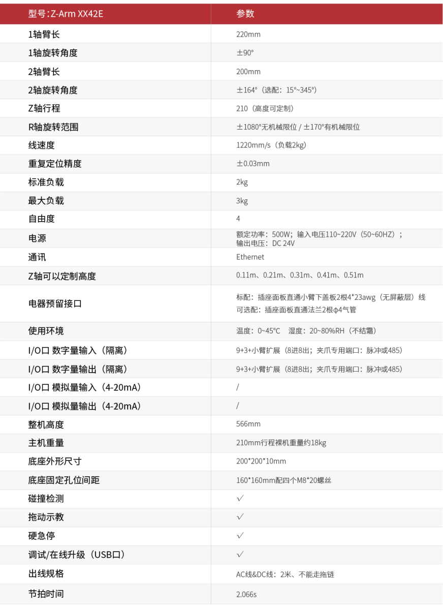 Z-Arm 2142E 核心參數(shù)