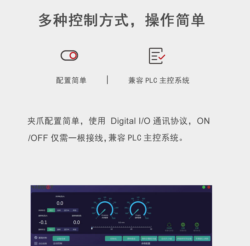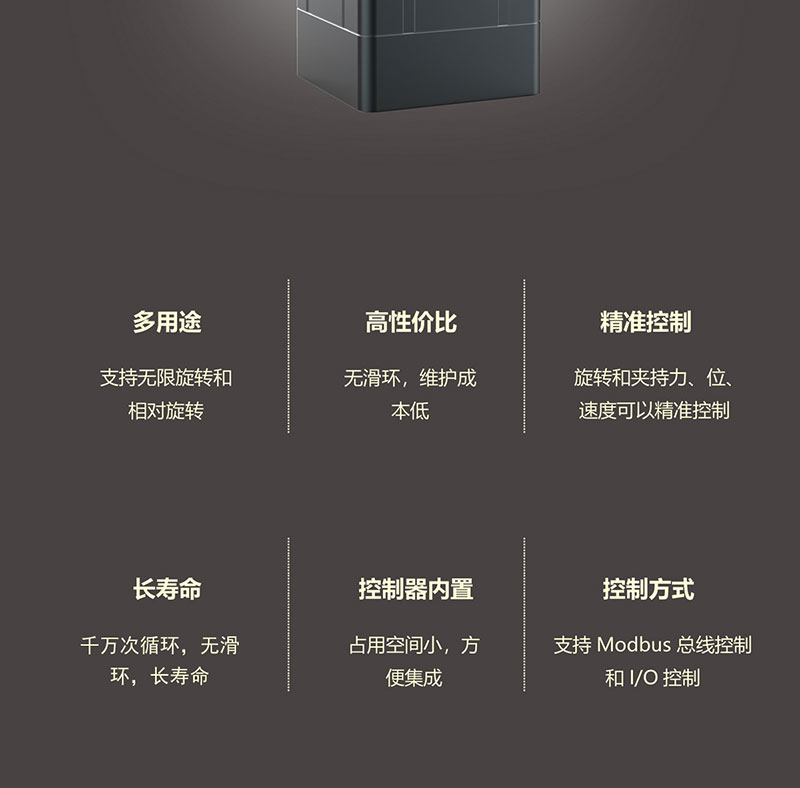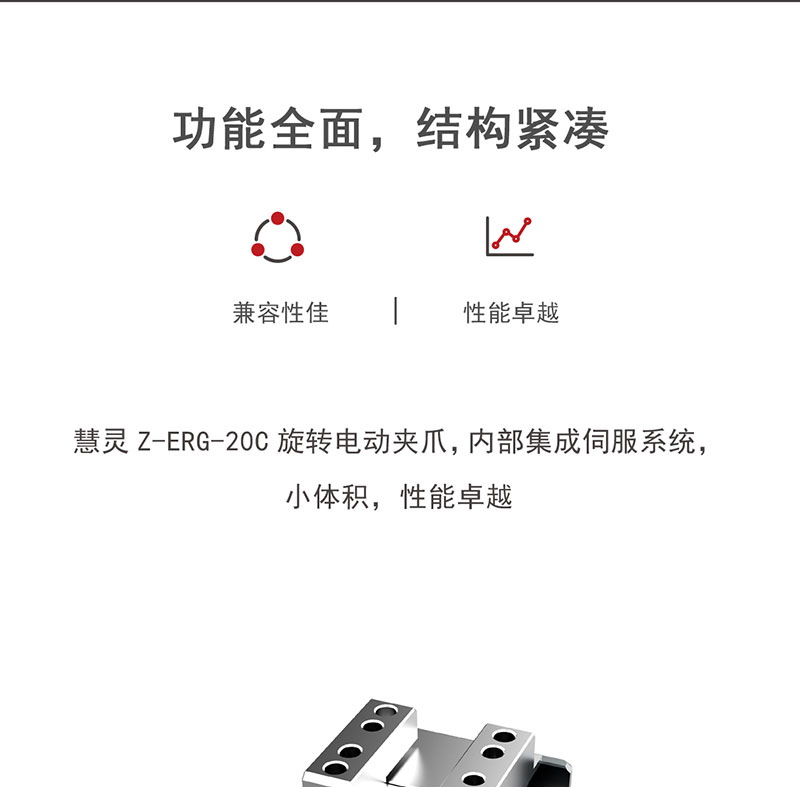 慧靈HITBOT,旋轉電動夾爪Z-ERG-20C,集成伺服系統的旋轉電動夾爪,小體積,性能卓越,力、位、速度可以通過Modbus精準控制,支持柔性夾持,可輕易夾取易碎物品,可用于生物醫藥、鋰電池、汽車產線、食品等等,應用場景廣泛!