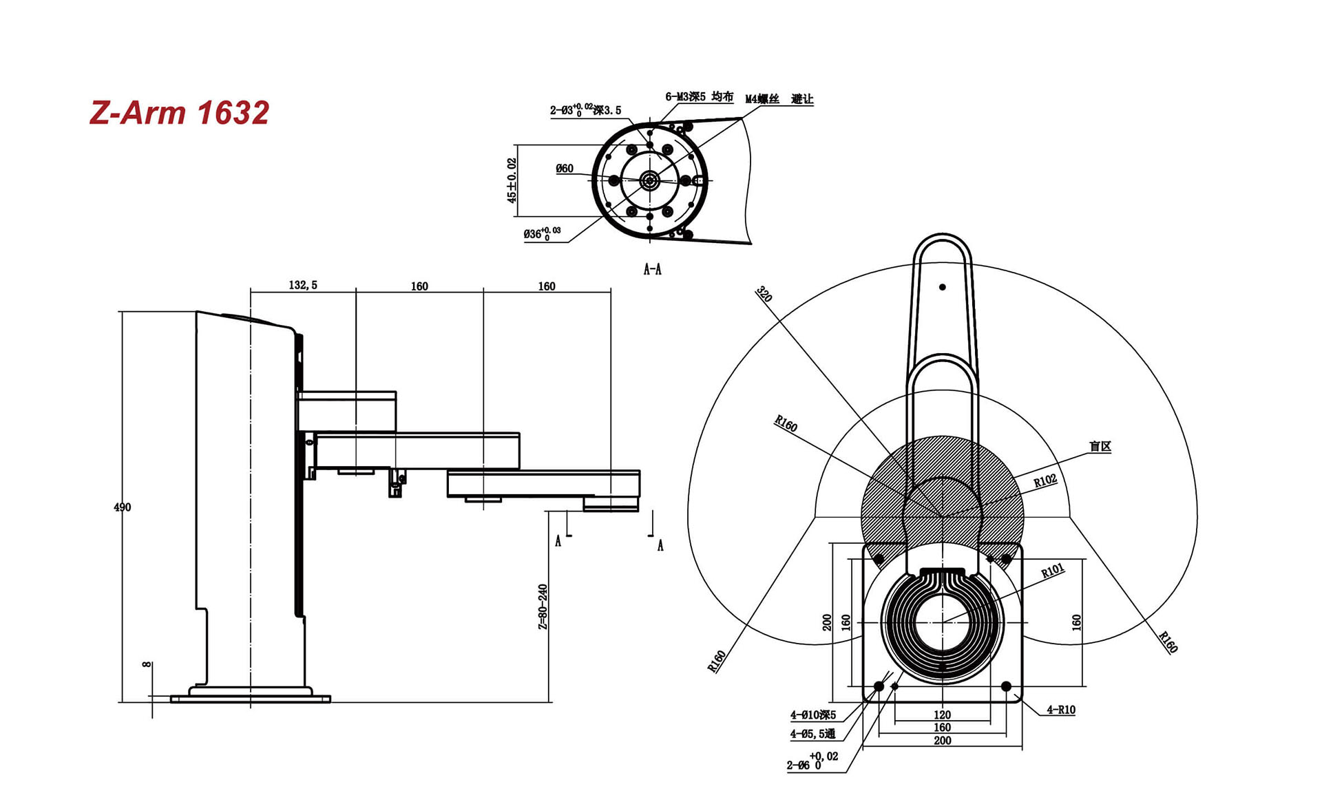 HITBOT Z-Arm 1632得益于自行開發的伺服電機,精密的光學編碼器和定制的驅動器算法,可將重復精度保持在±0.02mm。用戶將永遠不必擔心在其工作范圍內發生任何可能的錯誤-手臂伸直至320mm,Z軸伸直至160mm。