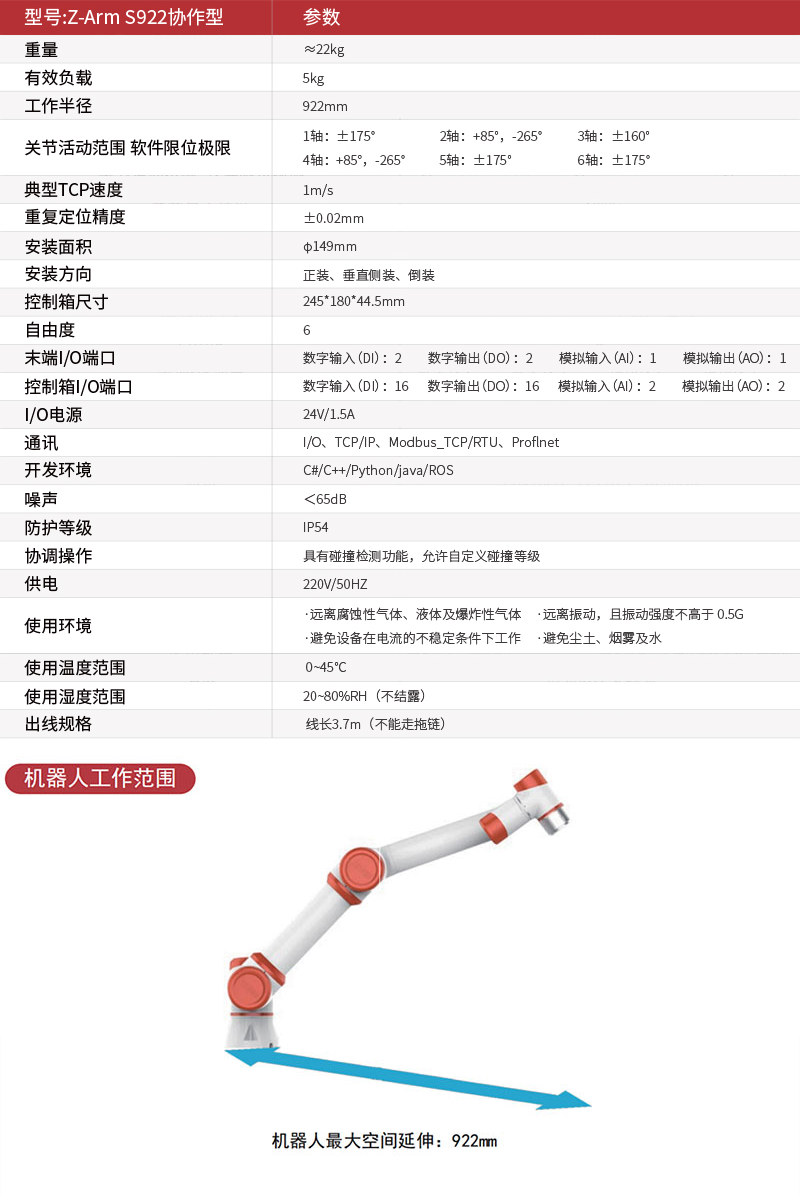 | 關節活動范圍 軟件限位極限/td> |