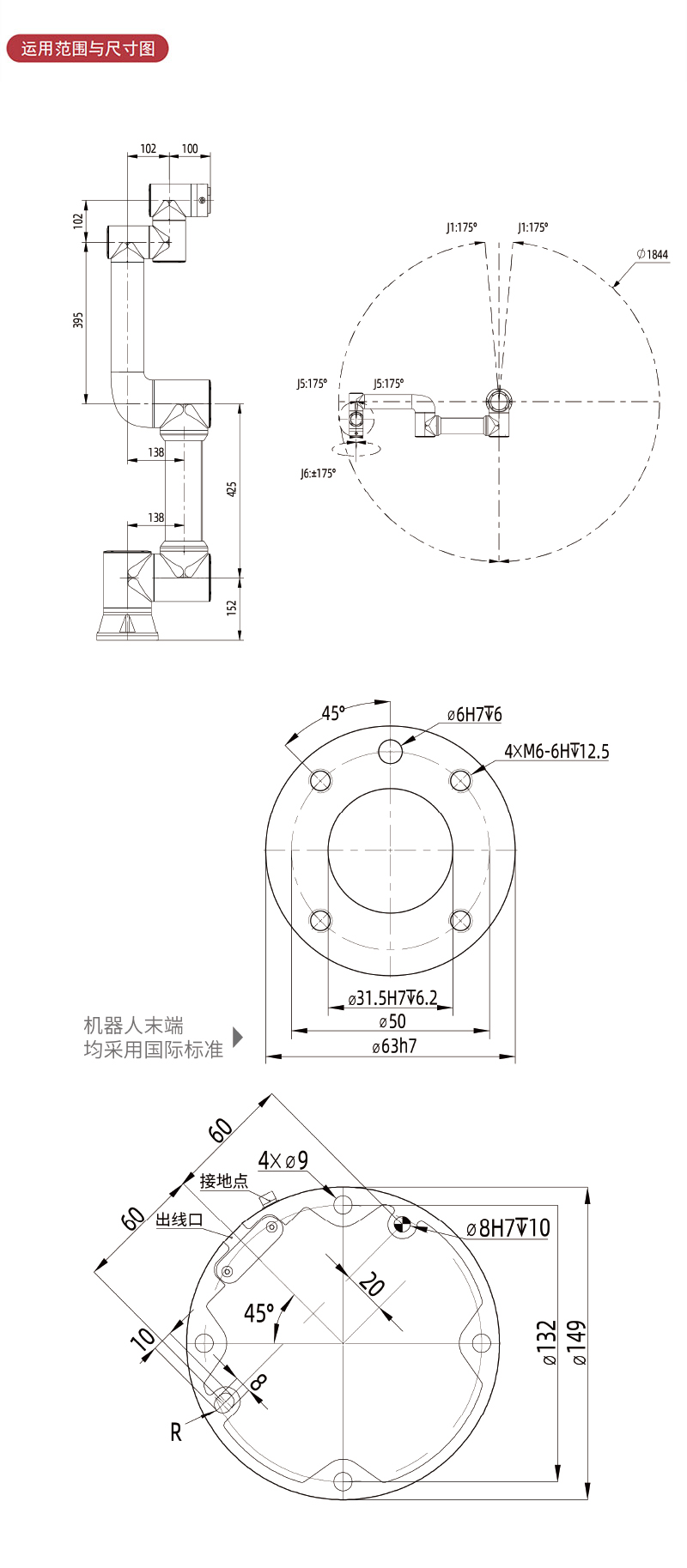 1軸:±175°;? 2軸:+85°,-265°;? 3軸:±160°;