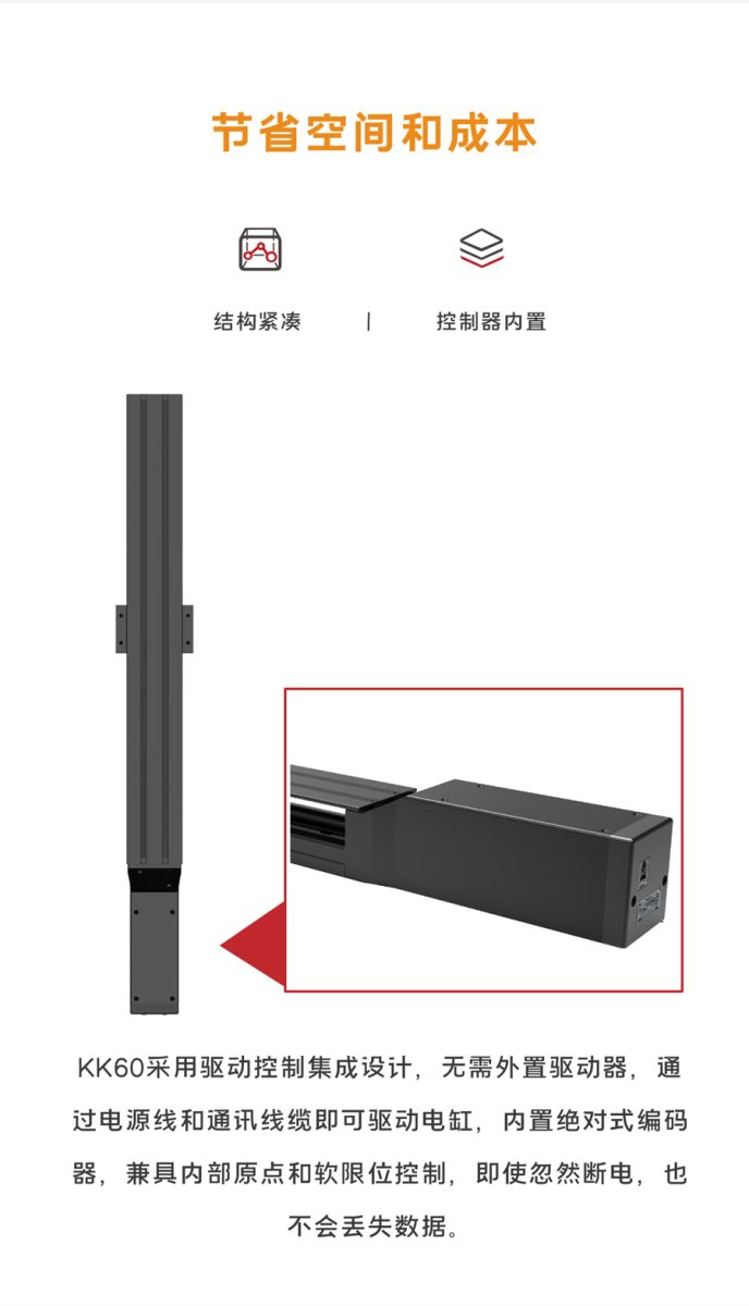 智能電缸Z-Mod-KK-60-10SE,驅(qū)控一體,高度集成,使用簡(jiǎn)單的智能電缸,集成化設(shè)計(jì),讓其更加省空間,有斷電保護(hù)功能,即使斷電也不會(huì)清除數(shù)據(jù)!