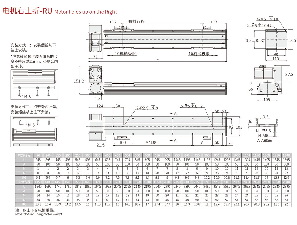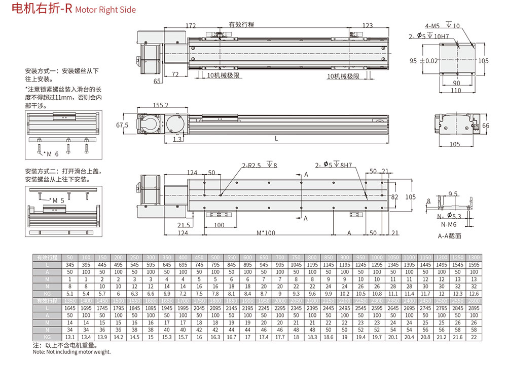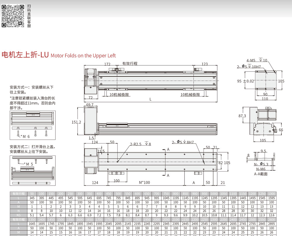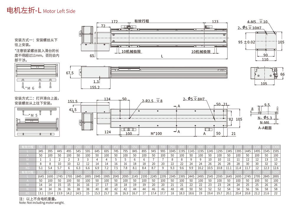 100-2550MM/50行程遞增 |