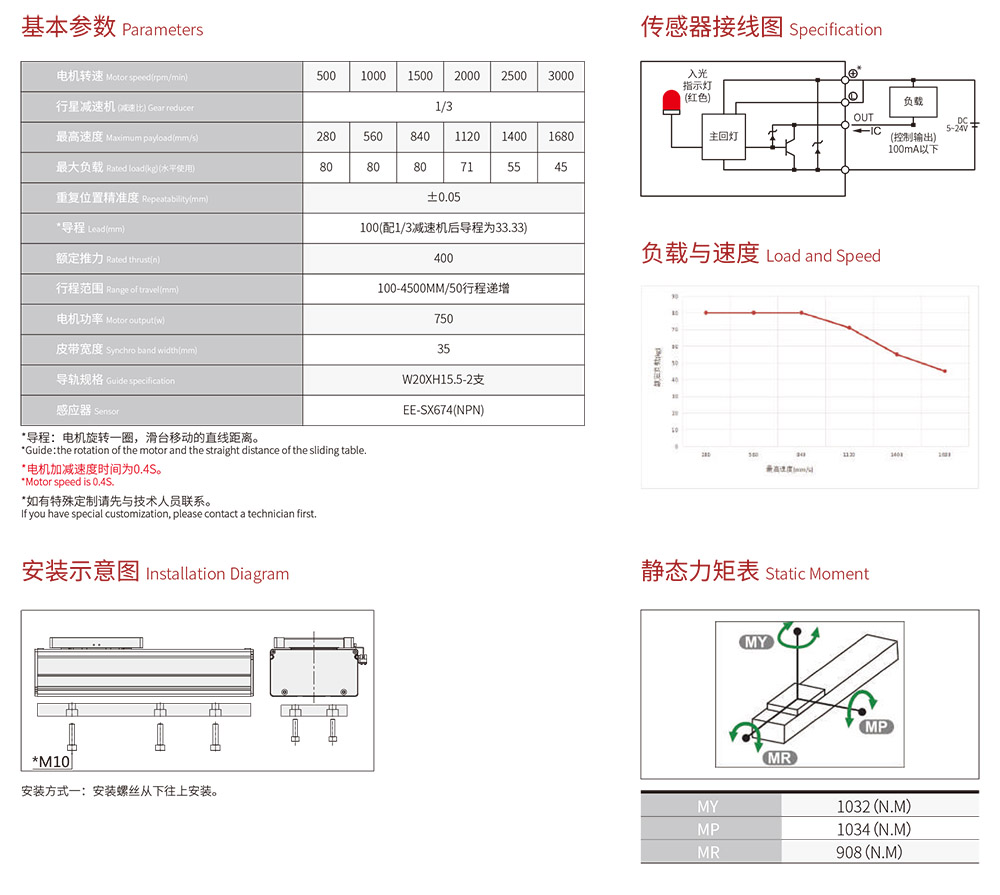 *導程 Lead(mm) 100(配1/3減速機后導程為33.33)