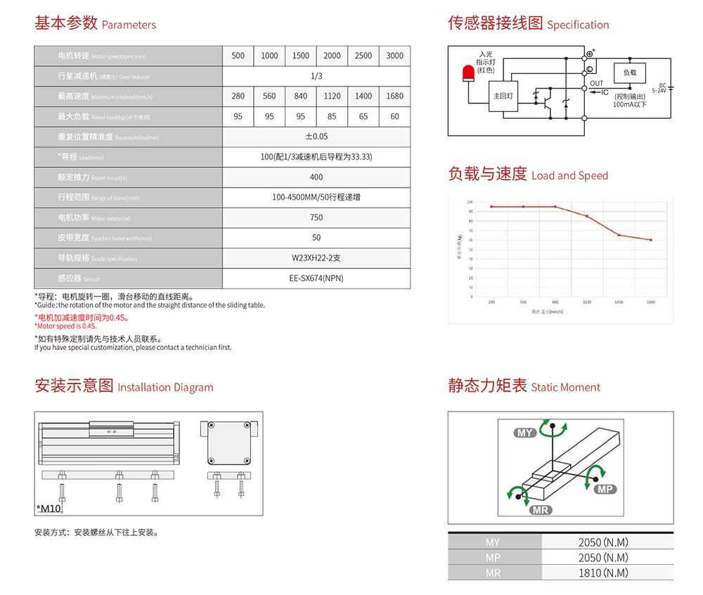*導程 Lead(mm) 100(配1/3減速機后導程為33.33)