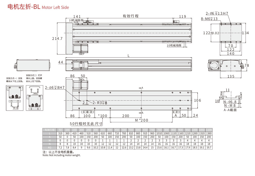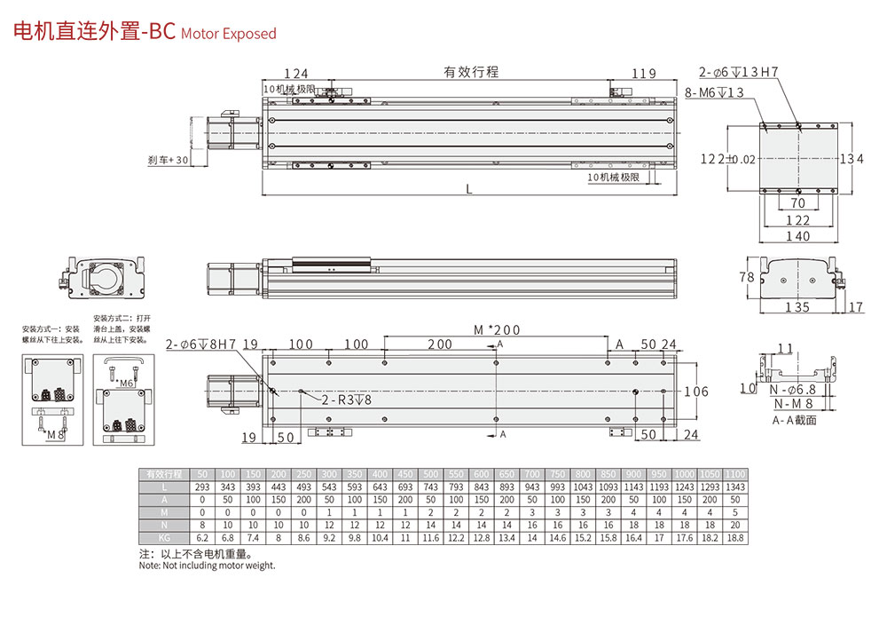 行程范圍 Range of travel(mm)50-1300MM/50行程遞增