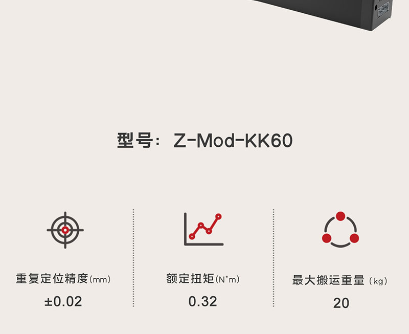 2022年1月25日 pruce 智能電缸 0 Z-Mod-KK-60-10SE 首頁 / 智能電缸 / Z-Mod-KK-60-10SE 播放視頻 電機功率/電壓:100W/DC24V額定扭矩:0.32N.m重復定位精度:±0.02mm行程范圍:58 108~508mm(100mm間隔)馬達額定轉速: 3000RPM 下載3D模型 下載產品手冊 播放視頻 電機功率/電壓:100W/DC24V額定扭矩:0.32N.m重復定位精度:±0.02mm行程范圍:58 108~508mm(100mm間隔)馬達額定轉速: 3000RPM 下載3D模型 下載產品手冊 產品描述 資料下載 產品描述 Z-Mod-KK-60-10SE 核心參數?100W0.32N.mDC伺服電機功率額定扭矩58~508mm3000PRM行程范圍馬達額定轉速*線框尺寸圖規格參數?型號性能電機功率/電壓100W/DC24V額定扭矩( N.m )0.32滾珠絲杠導程(mm)510最高速度(mm/sec)250500額定加速0.3G0.3G最大可搬重量(水平/壁掛)(kg)2010垂直84額定推力(N)361.7180.9行程范圍58-508mm ( 100mm 間隔)馬達額定轉速(RPM)3000注: 1G=9800mm/sec2通用規格重復定位精度±0.02mm驅動方式滾珠絲杠φ12mm轉造C7級動態容許力矩(注1)Ma:152N.m, Mb:152N.m, Mc:419N.m負荷允許伸出長度/傳感器①-LS, ②HOME, ③+LS, NPN, 24VDC感應器線纜長度2m基座材質鑄鋼,黑色安裝面積精度要求平面度0.05mm以下使用環境0-40℃, 85%RH(不結霜)注1:行走壽命為10000km時的數值尺寸圖代號說明 ? 質量; 單位:mm軌道長度150200300400500600最大行程58108208308?408?508G255050505050?M22?2?436N?2?23456K?100100?200100?200?100?質量(kg)2.55?2.953.554.154.755.45 資料下載 點擊下載產品手冊 點擊下載3D圖 點擊下載運動范圍圖 Z-Mod-KK-60-10SE 核心參數 產品詳細參數 產品型號Z-Mod-KK-60-10SE額定扭矩(N·m)0.32滾珠絲杠導程(mm)510最高速度(mm/sec)250500額定加速度(※1)0.3G0.3G最大可搬重量 水平/壁掛(kg)2010垂直84額定推力(N)361.7180.9行程范圍58-508mm(100mm間隔)馬達額定轉速(RPM)3000注:1G=9800mm/sec2重復定位精度±0.02mm驅動方式滾珠絲杠Φ12mm轉造C7級動態容許力矩(注1)Ma:152N·m,Mb:152N·m,Mc:419N·m負荷允許伸出長度/傳感器①-LS,②HOME,③+LS ,NPN, 24V DC感應器線纜長度2m基座材質鑄鋼,黑色安裝面積精度要求平面度0.05mm以下使用環境0-40°C,85%RH](無結霜)注1:行走壽命為10000km時的數值 規格參數 型號性能電機功率/電壓100W/DC24V額定扭矩( N.m )0.32滾珠絲杠導程(mm)510最高速度(mm/sec)250500額定加速0.3G0.3G最大可搬重量(水平/壁掛)(kg)9070垂直3622額定推力(N)1436.3718.2行程范圍?58-508mm ( 100mm 間隔)馬達額定轉速(RPM)3000注: 1G=9800mm/sec2通用規格重復定位精度±0.02mm驅動方式滾珠絲杠φ12mm轉造C7級動態容許力矩(注1)Ma:152N.m, Mb:152N.m, Mc:419N.m負荷允許伸出長度500mm以下傳感器①-LS, ②HOME, ③+LS, NPN, 24VDC感應器線纜長度2m基座材質鑄鋼,黑色安裝面積精度要求平面度0.05mm以下使用環境0-40℃, 85%RH(無結霜)注1:行走壽命為10000km時的數值尺寸圖代號說明 ? 質量; 單位:mm軌道長度150200300400500600最大行程58108208308?408?508G255050505050?M22?2?436N?2?23456K?100100?200100?200?100?質量(kg)2.55?2.953.554.154.755.45 產品詳情 相關產品