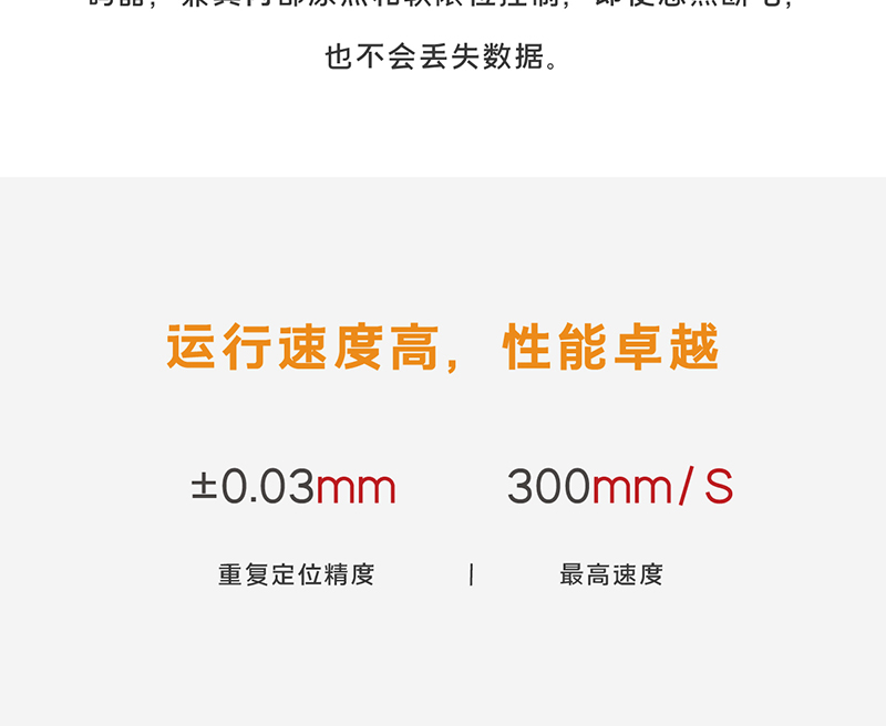 • 最高速度:水平:300mm/s(1.5kg負載),垂直:220mm/s(1.5kg負載)
